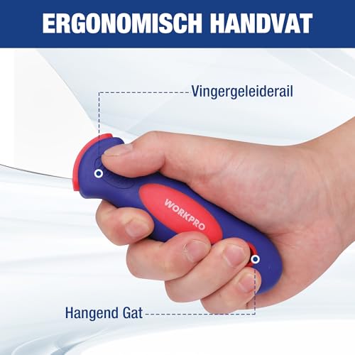 Specificaties: WORKPRO Professionele schilderspatel spatel set van roestvrij staal met kunststof handvat schilder gereedschap professionele putty mes 38 mm 75 mm 100 mm 150 mm 4-delig incl. 1 x stabiel met slijpen &
