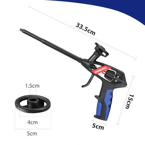 Specificaties: WORKPRO Schuimpistool PTFE, PU-schuimpistool, Breeuwschuimpistool, Bouwschuimpistool voor het Afdichten en Vullen incl. Flexibele Spuitverlengingen en Spuitklieren