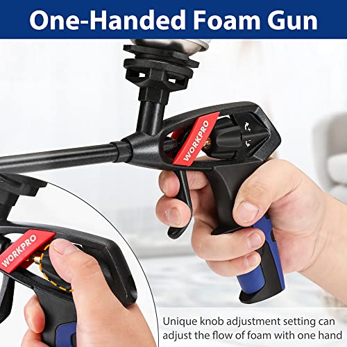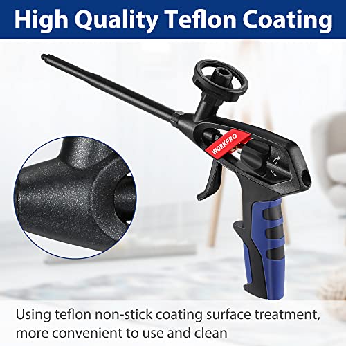 WORKPRO Schuimpistool PTFE, PU-schuimpistool, Breeuwschuimpistool, Bouwschuimpistool voor het Afdichten en Vullen incl. Flexibele Spuitverlengingen en Spuitklieren