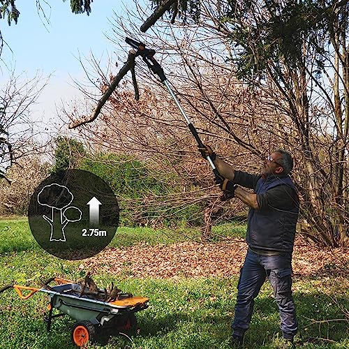 WORX NITRO WG325E.1 Mini-kettingzaag, 20 V, eenhands kettingzaag, borstelloze motor, 12 cm zwaardlengte, incl. PowerShare accu, oplader en verlengstang van 125 cm
