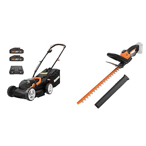 Worx WG779E.1, 40V (2 x 20V / 4.0Ah) Max, Draadloze Grasmaaier, Maaibreedte: 34 cm, Zwart/Grijs/Oranje & Worx WG261E.9 Accu-heggenschaar, 20 V, zonder accu en oplader geleverd
