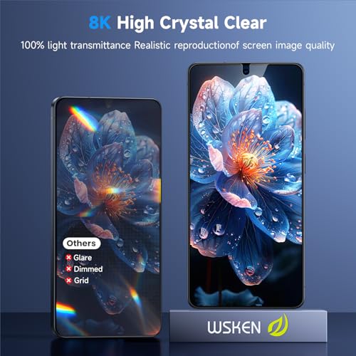 Hoogwaardig 9H + gehard glas: de WSKEN screenprotector voor Samsung Galaxy S26 beschikt over een verbeterde drievoudige ionenwisseltechnologie, die een super sterke schokbescherming, breukvastheid, krasbestendigheid en effectieve preventie van dagelijkse krassen en slijtage biedt. Dit zorgt ervoor dat uw telefoon geen angst heeft voor onbedoelde valpartijen of stoten en biedt het hoogste niveau van schermbescherming in elke omgeving