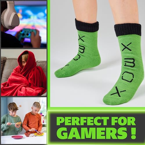 Specificaties: Xbox Pantoffels voor jongens, tieners, fuzzy antislip loungewear gamer warme sokken met grip pads, zachte gebreide fleece gevoerd, gezellig schoeisel, geschenken voor jongens