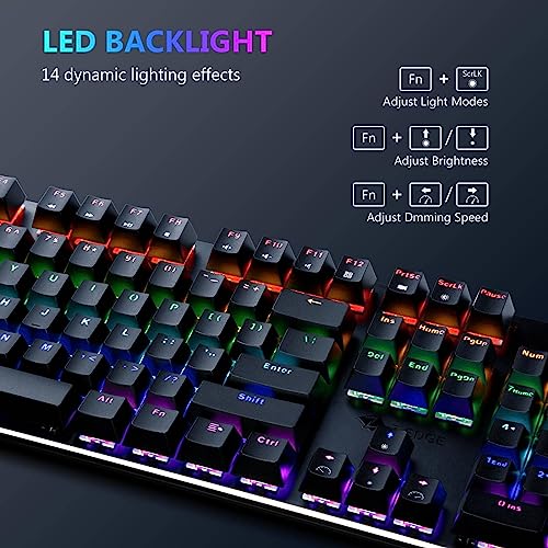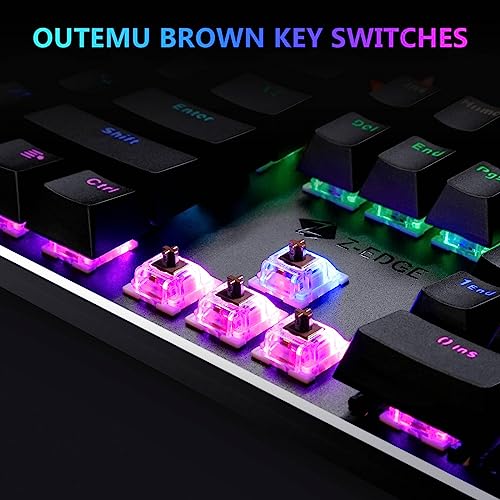 Z-Edge UK104 104 toetsen bedraad mechanisch gamingtoetsenbord, met regenboog RGB LED-achtergrondverlichting, Outemu bruine schakelaars / 207