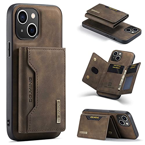 ZCDAYE Hoes voor iPhone 13 met kaarthouder, hoogwaardig leer iPhone 13 telefoonhoes telefoontas stabiele beschermhoes case iPhone 13 (6,1 inch), lichtbruin
