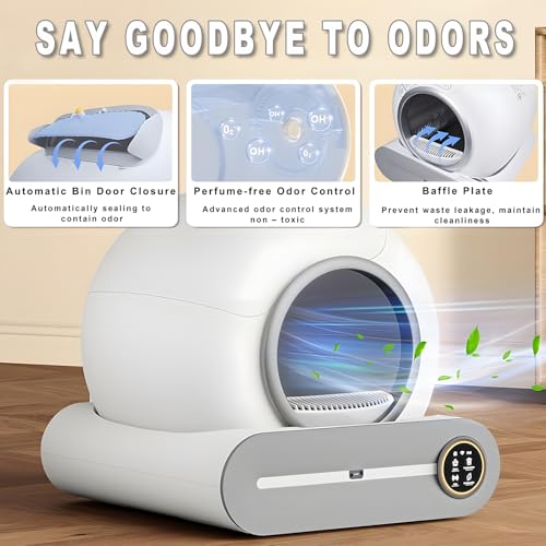 Plaats de eerste recensie voor “Zelfreinigende kattenbak, 65 l + 9 l, zelfreinigend voor katten met gezondheidsbewaking-app, ionische deodorant met vuilniszakken en matten, kattenbakvulling”