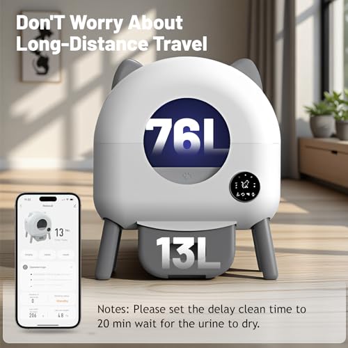 Groot amount: de verbeterde 80 liter container is geschikt voor katten van 1 kg tot 15 kg. De aparte afvalcontainer van 20 liter maakt 15-20 dagen probleemloze verwijdering mogelijk; ideaal voor ontspannen reizen of langere afwezigheden.