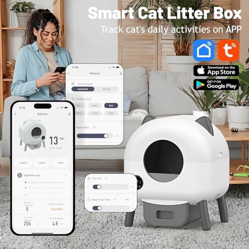 Intelligente kattenbak-oplossing: de zelfreinigende kattenbak met “Tuya Good”-app-besturing (opmerking: alleen compatibel met 2,4 GHz wifi) automatiseert de reiniging en maakt bewaking op afstand mogelijk. Tijdbesparing en comfortabele bediening zorgen voor moeiteloze hygiëne – zelfs op afstand.