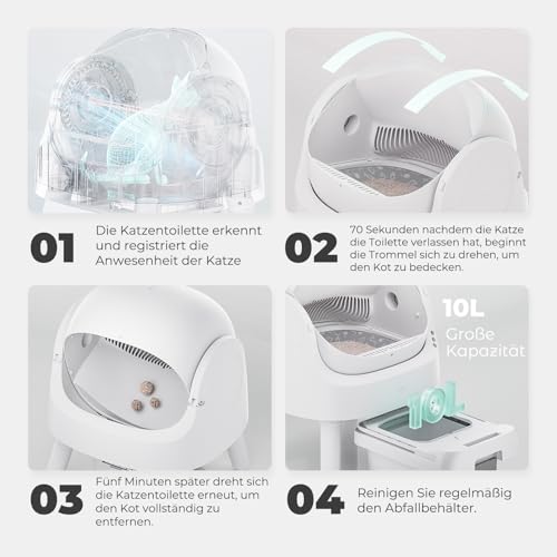 Automatische verwijdering van kattenpoep, handen blijven vrij: de zelfreinigende kattenbak kan het kattenafval automatisch reinigen, zodat er geen handmatig scheppen nodig is. De zorg voor uw kat is tijdbesparend, gemakkelijker en goedkoper.