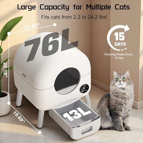 Zelfreinigende kattenbakvulling, 89 l, app-bediening, grote capaciteit, veilige waarschuwing, XXL, voor grote katten