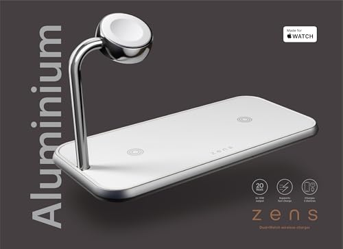 Zens Dual+Watch Wireless Charger, 10W Wireless Charging Station voor iPhone/Apple Watch/Qi-apparaten, Inclusief 24W Voedingsadapter (EU/UK/US) & 1,5M Geïntegreerde Kabel, Wit