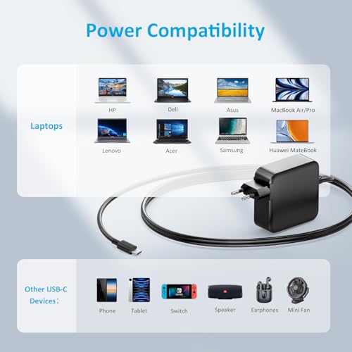 AC-ingang: one hundred-240V 50-60Hz; DC-uitgang: 20V 3.25A, 5V 9V 12V 15V 3A. Nominaal vermogen: 65 W max. Deze voeding is compatibel met Lenovo Thinkpad Yoga HP Spectre Dell XPS Acer Asus Chromebook Samsung MacBook Skilled/Air Huawei MateBook en andere USB-C laptops
