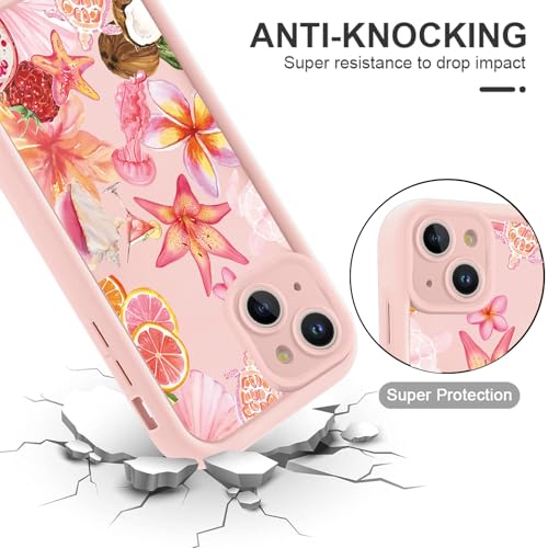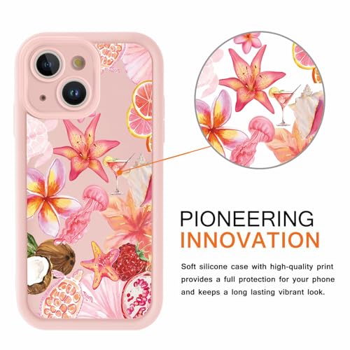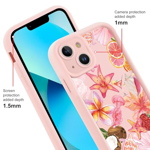 De iPhone 13 6,1 inch telefoonhoes van zacht TPU met roze zomer bloemen schildpad patroon biedt slanke, schokbestendige bescherming. De verhoogde randen beschermen camera en scherm tegen krassen en stoten, terwijl het lichte materiaal een comfortabele grip en draadloos opladen mogelijk maakt.