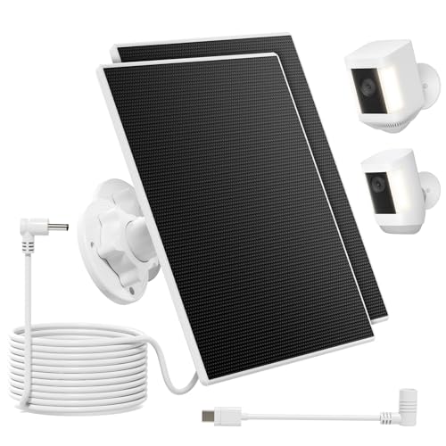 Zonnepaneel voor Ring-camera’s, 3W Zonnepaneel met Ingebouwde 4000mAh accu compatibel met Ring Spotlight Cam/Pro/Plus-accu en Stick Up Cam/Pro accu – 2 stuks